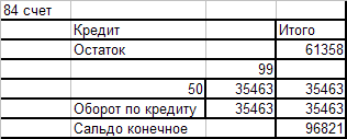 Оборотно - сальдовая ведомость по счёту 84