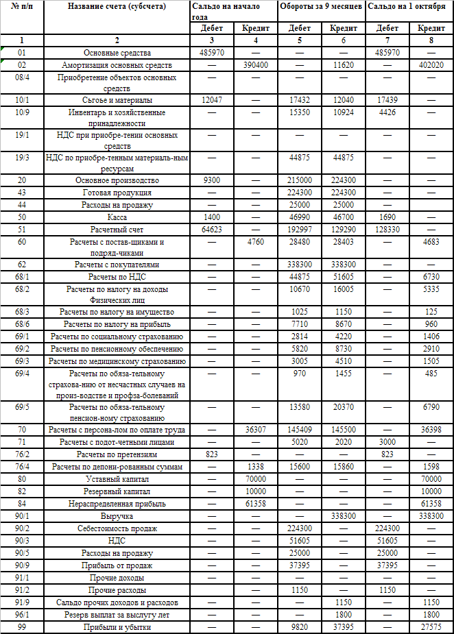 Оборотно - сальдовая ведомость за 4 квартал
