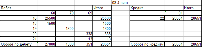 Оборотно - сальдовая ведомость по счёту 08-4