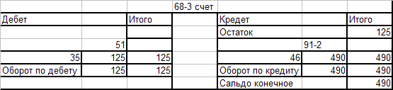 Оборотно - сальдовая ведомость по счёту 68-3
