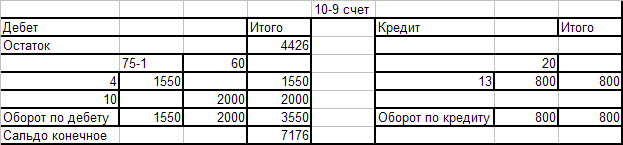 Оборотно - сальдовая ведомость по счёту 10-9