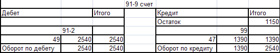 Оборотно - сальдовая ведомость по счёту 91-9