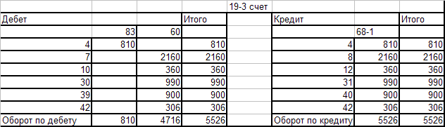 Оборотно - сальдовая ведомость по счёту 19-3