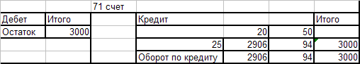 Оборотно - сальдовая ведомость по счёту 71