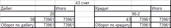Оборотно - сальдовая ведомость по счёту 43