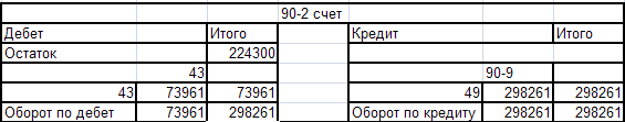 Оборотно - сальдовая ведомость по счёту 90-2
