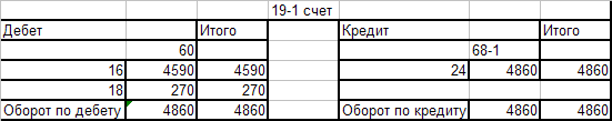 Оборотно - сальдовая ведомость по счёту 19-1
