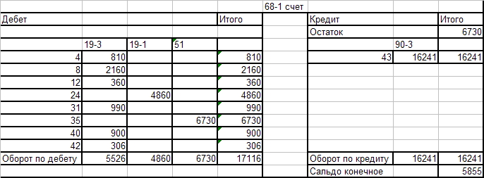 Оборотно - сальдовая ведомость по счёту 68-1