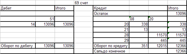 Оборотно - сальдовая ведомость по счёту 69