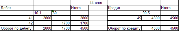 Оборотно - сальдовая ведомость по счёту 44