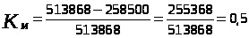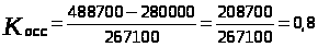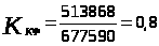Данный коэффициент показывает, какая часть деятельности организации финансируется за счет собственных средств, а какая – за счет заемных. Нормативное значение показателя – больше 1. В нашем случае и на начало года и на конец периода значения коэффициента находятся в пределах нормы. Если величина показателя меньше 1, это свидетельствует об опасности неплатежеспособности и нередко затрудняет возможность получения кредита.