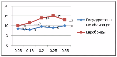 Таким образом, сформированную структуру портфеля ценных бумаг, образованную в результате добавления к существующему портфелю корпоративных ценных бумаг государственных облигаций, а также еврооблигаций позволило повысить доходность при одновременном снижении уровня риска инвестиционных активов.