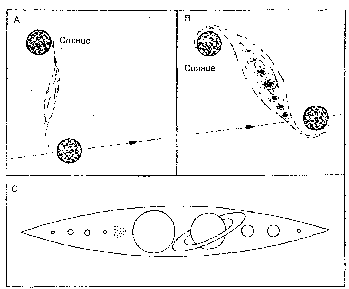 Наиболее знаменитая теория была выдвинута сэром Джеймсом Джинсом, известным популяризатором астрономии в годы между Первой и Второй мировыми войнами. (Он также был ведущим астрофизиком, и лишь в конце своей карьеры обратился к созданию книг для начинающих.)