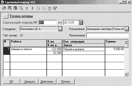 Автоматизация начисления и выплаты сдельной заработной платы работникам мебельного цеха