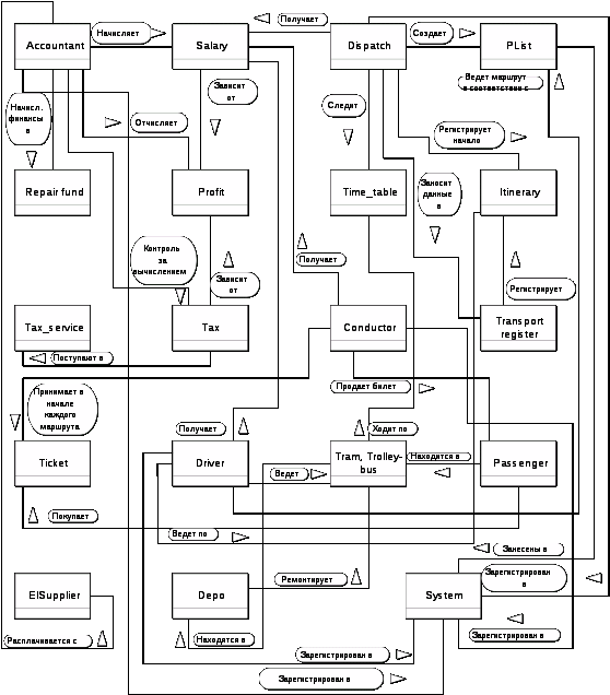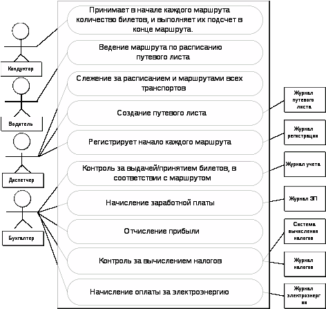 В качестве непосредственных пользователей системы могут выступать: водитель, диспетчер, бухгалтер и кондуктор городского электротранспорта.