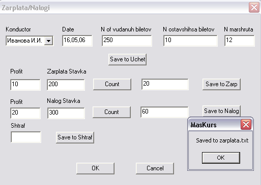 3. Бухгалтер вызывает кондуктора и информирует его о недостаче. Кондуктор платит необходимую сумму штрафа, по ранее определенной сумме. Бухгалтер заносит заплаченную сумму штрафа в «журнал штрафов».