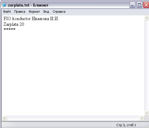 fOpen. WriteString («FIO konductor «+str2+»\n»);