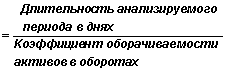 Обратная величина, помноженная на 360 дней (или количество дней в анализируемом периоде), указывает на продолжительность оборота, в этом случае оборачиваемость средств, вложенных в имущество организации, оценивается периодом оборота, то есть средним сроком, за который возвращаются в хозяйственную деятельность организации денежные средства, вложенные в производственно-коммерческие операции.