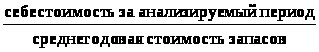 - коэффициент оборачиваемости материальных средств показывает число оборотов запасов и затрат за анализируемый период;