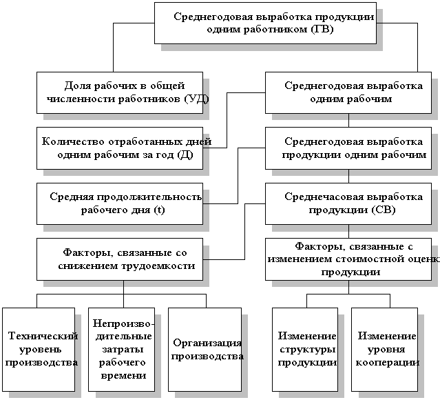 Рис.4. Детерминированная факторная система фонда заработной платы рабочих-повременщиков