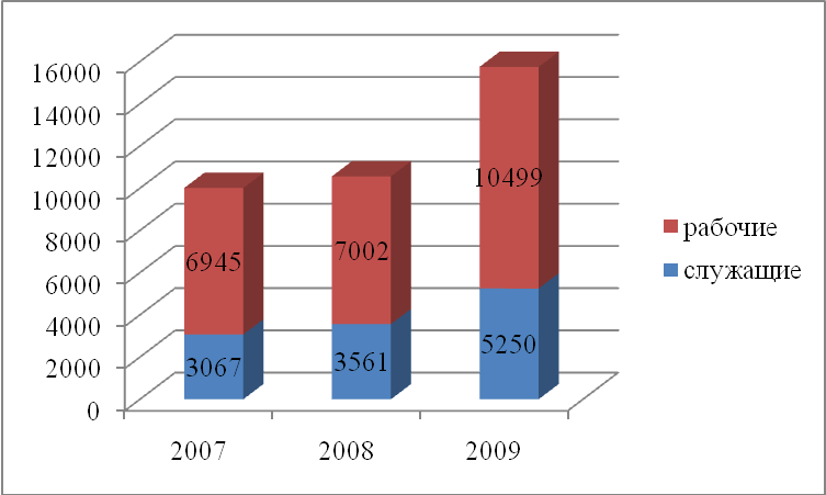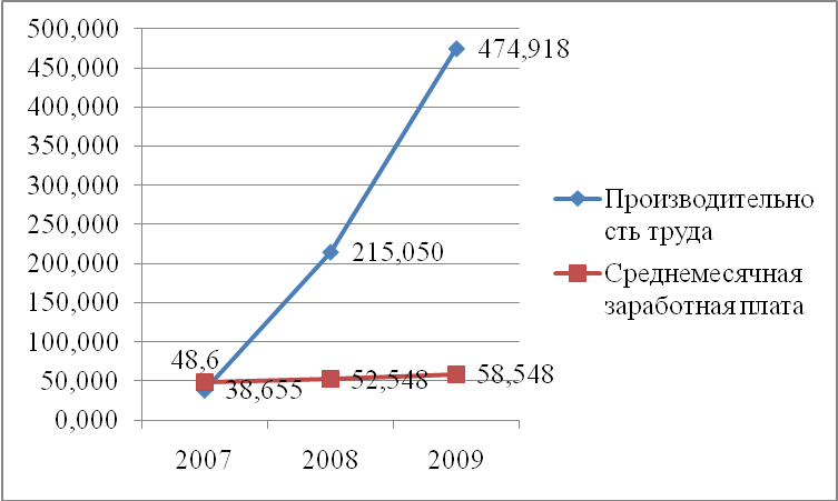средняя численность работников увеличилась за весь рассматриваемый период в целом на 63 человека. Данный факт повлек за собой увеличение фонда заработной платы на 5737 тыс. руб. При этом рассматривая изменения в разрезе годов видно, что несмотря на снижение численности в 2008 году по сравнению с 2007 на 5 человек, фонд заработной платы увеличивается. Это связано в первую очередь с повышением заработной платы работникам предприятия. И это является положительным моментом.
