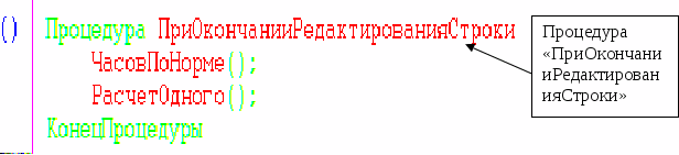 Рис.5.33. Процедура «ПриОкончанииРедактированияСтроки»