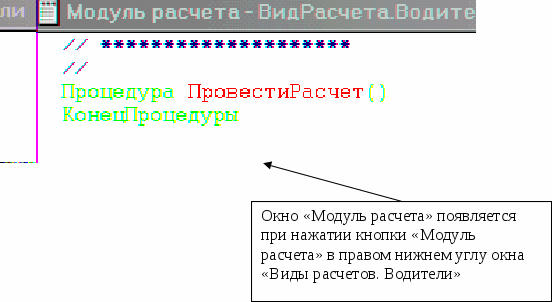 Сотрудник, тариф, отработанные дни, отработанные часы, дни ремонта, часы ремонта, часы сверхнормы все эти показатели берутся из соответствующих справочников и граф, для подсчета суммы общей, суммы ремонта, суммы сверхнормы. Создавая эту процедуру мы учитываем, что если неизвестен какой либо показатель, то он может заменяться каким-нибудь из справочника: например, если неизвестен тариф водителя, то оплата его труда может рассчитываться по окладу, а оклад берется из Справочника «Сотрудники», где он и указан. Если у водителя отсутствуют дни и часы сверхнормы или дни и часы ремонта (в данном случае они будут равны 0), то процедура предусматривает не брать такие показатели для расчета общей суммы.