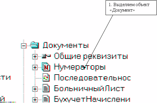 1) работа с объектами метаданных типа «Документ» ведется в окне «Конфигурация – Метаданные». Выделяем объект «Документ» в соответствии с рис.5.12.