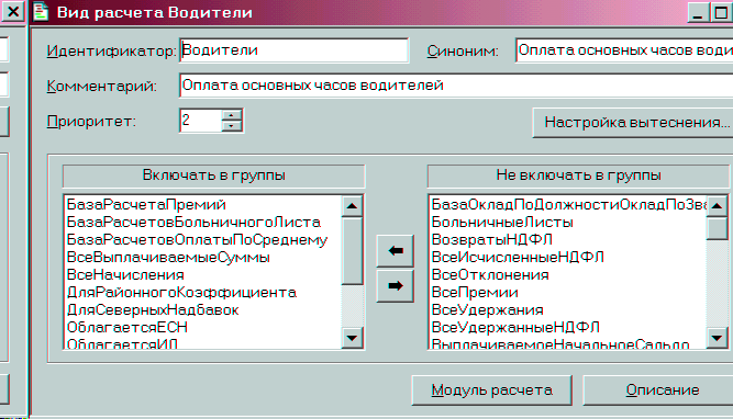 3) в поле «Журнал» указывается тот журнал, в который будут помещаться документы данного вида, то есть «Документ Водители» непосредственно будет находиться в журнале «Начисления». Так как у водителей при приеме на работу в приказе указывается месячный оклад, а учет ведется по часам, есть необходимость пересчета месячного оклада в часовую тарифную ставку.