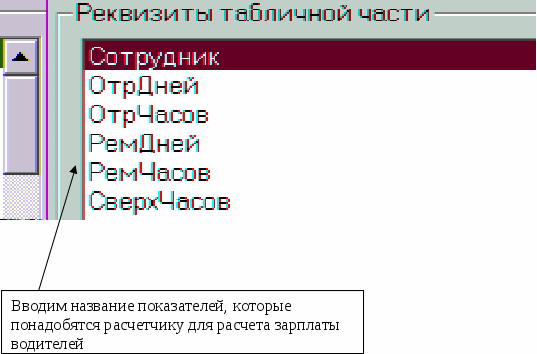 Рис.5.16. «Реквизиты табличной части» правое окно «Документа Водители»