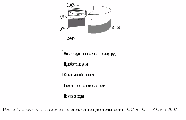 Из полученной таблицы 3.1 и рисунка 3.4 наблюдаются следующие изменения в структуре расходов по бюджетной деятельности ГОУ ВПО ТГАСУ в 2007г.: