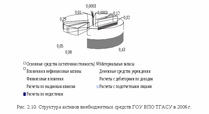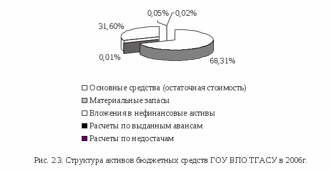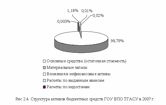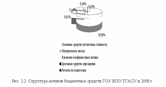Из полученной таблицы 2.1 и рисунка 2.1 наблюдаются следующие изменения в активах бюджетных средств ГОУ ВПО ТГАСУ: