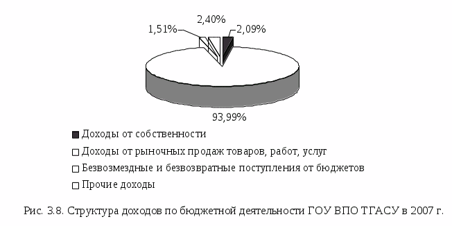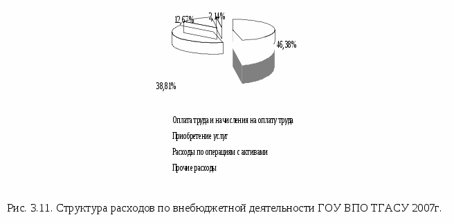 Из полученной таблицы 3.2 и рисунка 3.8 наблюдается следующая структура доходов по внебюджетной деятельности ГОУ ВПО ТГАСУ в 2007г.:
