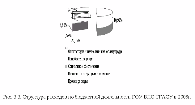 Из полученной таблицы 3.1 и рисунка 3.3 наблюдаются следующие изменения в структуре расходов по бюджетной деятельности ГОУ ВПО ТГАСУ в 2006г.: