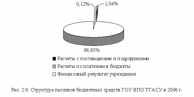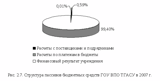 Более наглядно анализ структуры активов и пассивов бюджетных средств ГОУ ВПО ТГАСУ в 2005-2007 гг. представлен на рисунках 2.2, 2.3, 2.4, 2.5, 2.6, 2.7.