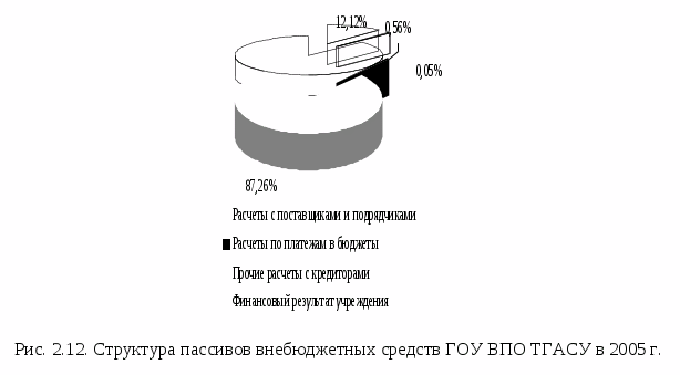 Более наглядно анализ структуры активов и пассивов бюджетных средств ГОУ ВПО ТГАСУ в 2005-2007 гг. представлен на рисунках 2.9, 2.10, 2.11, 2.12, 2.13, 2.14.