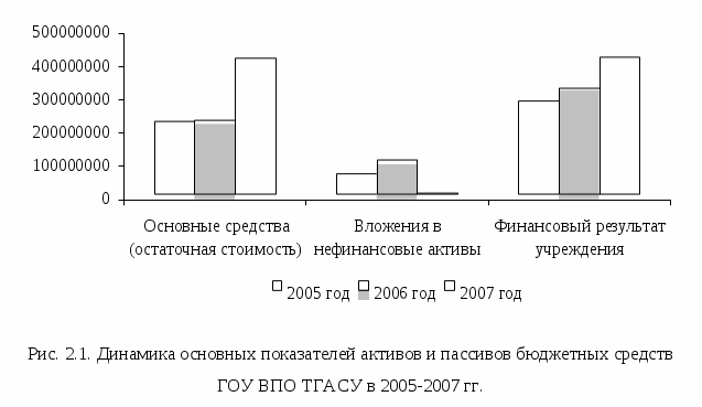 Более наглядно динамика активов и пассивов бюджетных средств ГОУ ВПО ТГАСУ за 2005-2007 гг. представлена на рисунке 2.1.