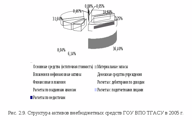 Из полученной таблицы 2.2 и рисунка 2.8 наблюдаются следующие изменения в активах внебюджетных средств ГОУ ВПО ТГАСУ: