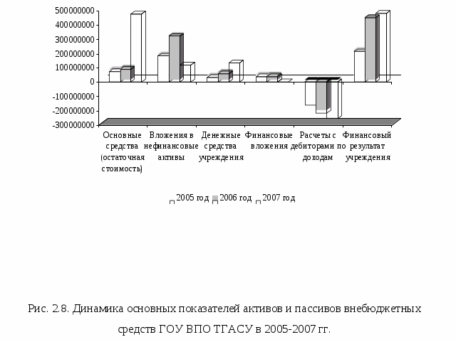 Более наглядно динамика активов и пассивов внебюджетных средств ГОУ ВПО ТГАСУ за 2005-2007 гг. представлена на рисунке 2.8.