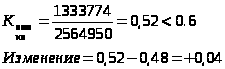 Повышение удельного веса в валюте баланса итоговой величины «Капитал и резервы» с 48% до 52% является положительным фактором. Это свидетельствует о попытке предприятия укрепить финансовое положение.