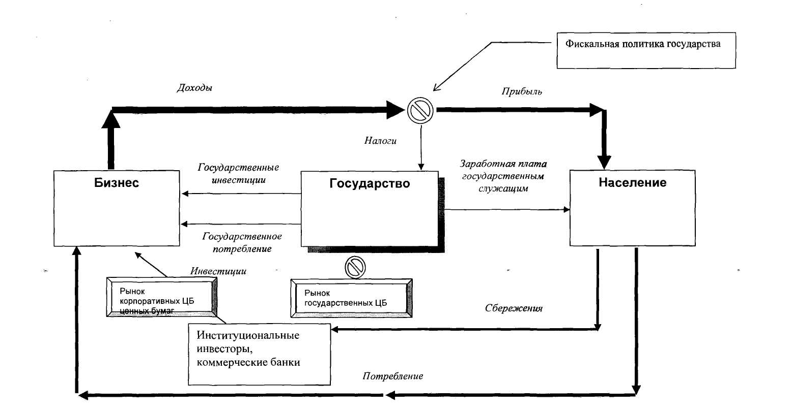 Частные инвесторы, накопленные сбережения направляют: 1) в инвестиции через фондовый рынок путем приобретения корпоративных ценных бумаг; 2) в государственный долг через рынок государственных ценных бумаг путем покупки государственных долговых обязательств.