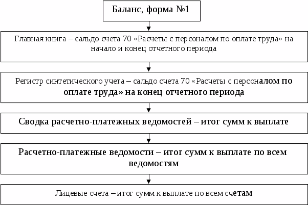 соответствие показателей аналитического учета по счету 70 с записями в Главной книге и бухгалтерском балансе на одну и туже дату.