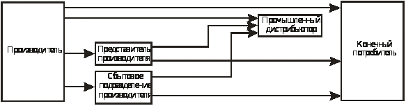 Участники купли-продажи товаров промышленного назначения могут быть связаны напрямую или через торговых посредников. Прямой канал распределения традиционно определяется как случай, когда производитель контролирует распределение своего товара от фабрики до конечного потребителя или производителя готовых изделий.