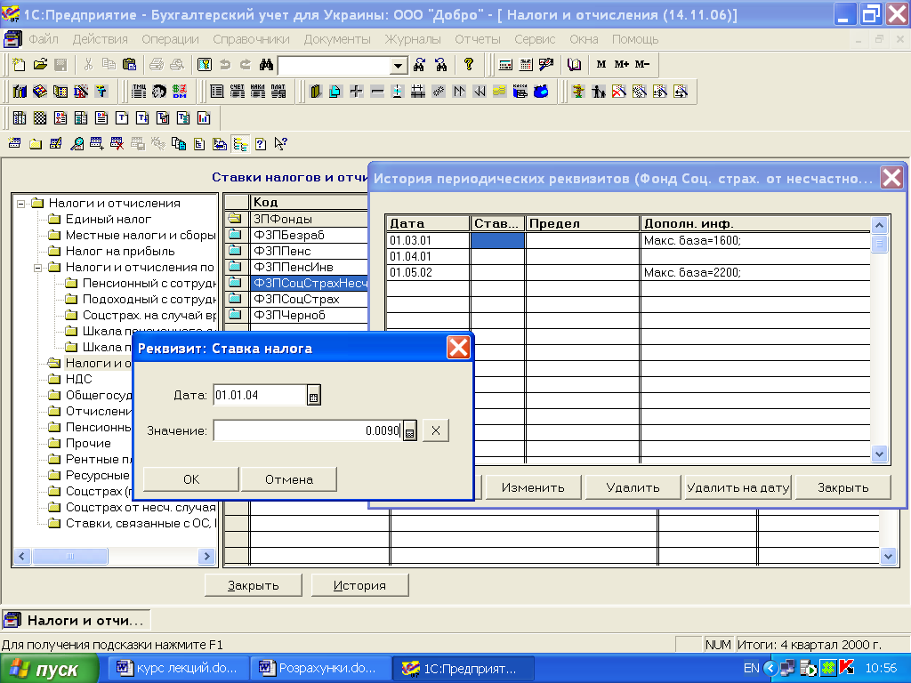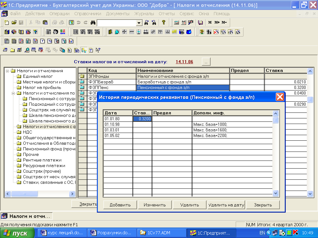 Рис. 2.2 Історія елементу довідника «Налоги и отчисления»