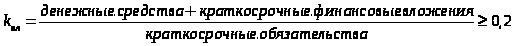 коэффициент покрытия (k>пок>) характеризует прогнозируемые платежные возможности при условии погашения краткосрочной дебиторской задолженности и реализации имеющихся запасов: