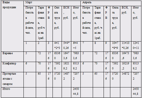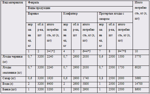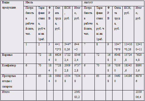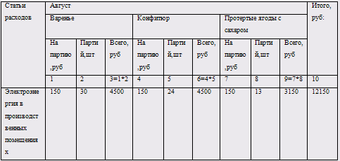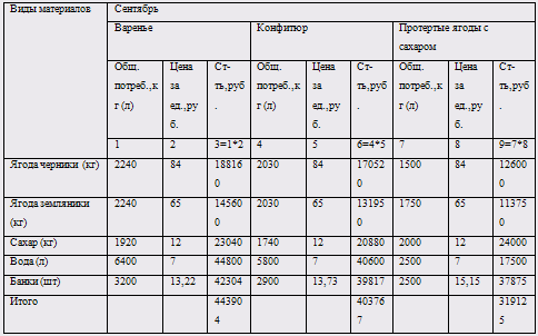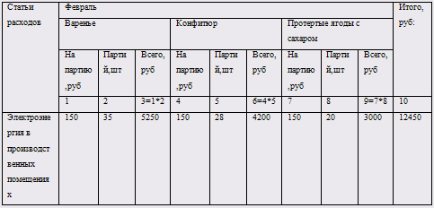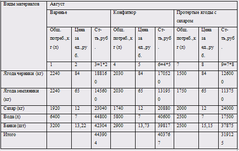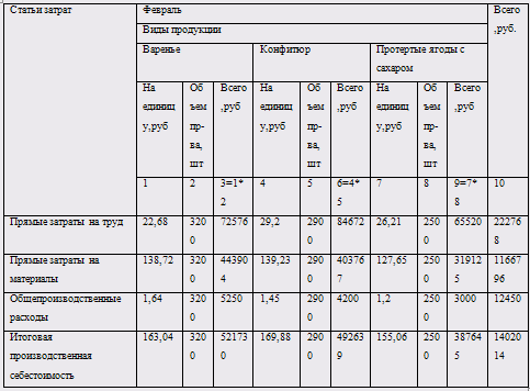 2.4 Составление калькуляции по видам продукции на предприятии "Ягодка"