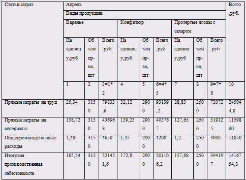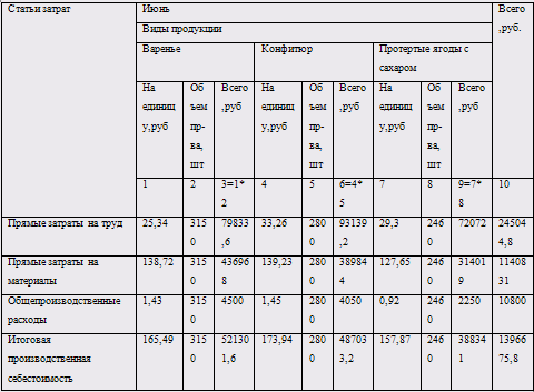 Глава 2. Расчет себестоимости единицы продукции предприятия "Ягодка"