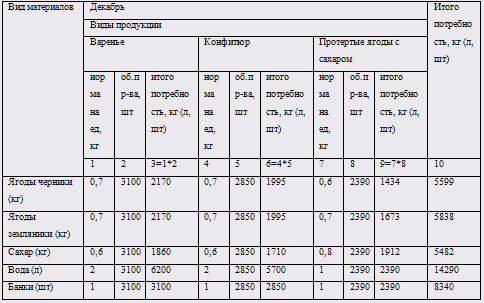 3.1.1 Бюджет потребности в материалах на 2009 год