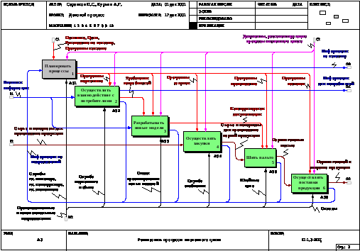 На рисунке А.3 представлена детализация процесса А3 «Реализовать процессы жизненного цикла». Анализ соответствия делового процесса «Производить женские пальто» требованиям СТБ ИСО 9001 приведен в таблице А.2. На диаграмме присутствуют все процессы, обязательные с точки зрения СТБ ИСО 9001.
