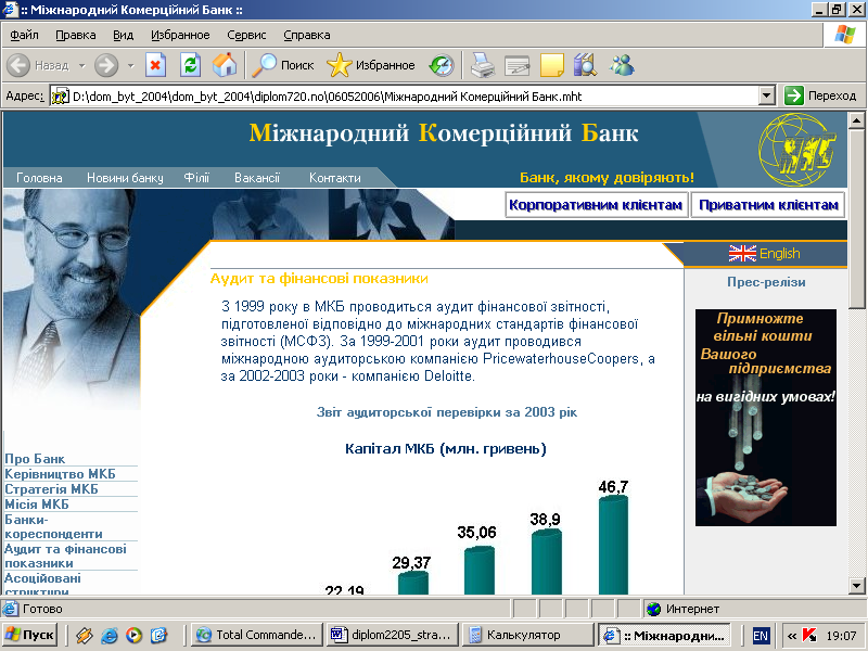 визначені основні проблеми та напрямки розвитку бізнесу ВАТ „Міжнародний комерційний банк” на зовнішніх ринках.